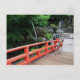 Det finns många hjortar som vandrar över hela ön Miyajima i Japan. Jag fångade den här genom en röd träbro.