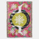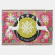 Den vackra julfilten i helgdag har en bakgrund av shock rosa med vita snöflingor och snöflingor, ett ring med fast svart med några vita snöflingor och ett centrum för senapsliknande gult med små vita polka dots och stora snöflingor. Två vita hjort silhuettes lägger till det här söt helgdag och det finns ett område som du lätt kan anpassa med din familj namn.