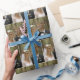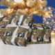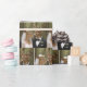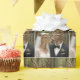Ett hjortpar i bröllopskläder, med hjortbruden i blomsterkrans och slöja och hjorthjorten i kostym och fluga, står i en skog