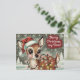 En söt hjort önskemål per god jul, söt vintage nostalgia kitsch-vykort.