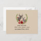 En jul bröllop spara datum med en illustration av röda blommor, holly och greenery arrangerade runt en bucks och en hund. Anpassa texten. Leta efter matchande bröllopsinbjudningar och mer på Jill's Paperie.