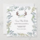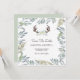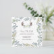 VG Invites fyrkantig hjorthorn spara datum-kort har frodig grönska och vackra blå blommor som ramar in era bröllopsdetaljer. En kompletterande grön färg pryder baksidan av kortet. Ett rustikt men sofistikerat val för vår-, sommar-, höst- och vinterbröllop. Designad av Victoria. Besök www.zazzle.com/vginvites för mer
