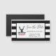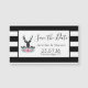 Spara datumet bröllop-magnet med ett svart hjort med stora kantler. Geometriskt linjer i hjortens ansikte ger en kreativ beröring. Färgblommor och löv av mynta rosa bildar en söt blommigt bouquet under hans huvud. En skiss av bergsområden som är placerad bland blommorna ökar också känslan hos land. Bakgrunden är ett svartvitt strimlat mönster.