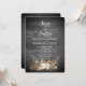 Glödande ljusslinga i hjorthorns blomsterbukett på rustikt svart trä för en höstbröllopsinbjudan.