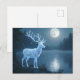 En magisk vit hjort står bredvid en lugn sjö medan fullmånen stiger upp i natthimlen på detta vackra fantasipostkort.