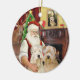 Tomten på hemmaplan inför en mysigt brand med sina två mjuka jackat Wheaten Terriers före den stora natten. (Observera att Mona Lisa hänger över manteln.)