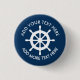 Nautisk frakt, knappar för att fästa anpassningsbarna. Blåvit och vit logotyp med böjd textmall. Roligt party befordrar förnödenheter och tillbehör till Födelsedagsfest, målbröllop på stranden, möhippa, babydusch, pension etc. Lägg till ditt eget namn eller roliga citat. Skapa dina egna runda namn-märken med maritima teman. Och trevlig för båtkapten på segling/ombord på resor. Ändra kvantitet om du vill hämta billigten prist.