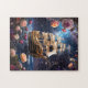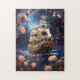 En roligt fantasi-bild av HMS Victory, Lord Nelsons Frakt-pussel. Att resa genom galaxen med planeter och börja i himlar.