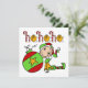 En söt julklapp som är klädd i ett rött strumplock och en helgdag som vilar mot en träd-dekorerad text i boll och candy cane läser Ho Ho Ho på helgdag T-shirts, mugg, säckar, sweatshirts, keepsakes, knappar, magneter, klistermärken med mera!