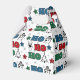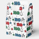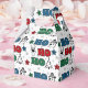 Ho-Ho-juldesign med snöflingor, snögubbe, Julgran, renar och färgstarka stjärnor dekoration på vit bakgrund
