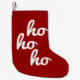 Ho-ho-textdesignillustration med vit brev på röd bakgrund inför jul. Det går att ändra bakgrunden till färg och lägga till en annan i designen efter eget val.
