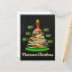 Ho! Ho! Ho! Marinara julen. Vem behöver en ful jultröja för att fira högtiden? Sprid glädje och skratt med vår fantastiska italienska mat-humor-kort. En röd gaffel full med virvlande spaghetti formar en julgran, redo på en grön tallrik. Pastaträdet är dekorerat med välsmakande köttbullar och krönt med en guldstjärna. Det enda som saknas är marinaden, så skicka över söndags-såsen. Ring in det nya året och legalisera marinaden! Denna design visas på en svart tavla i bakgrunden.
