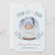 Ho Ho Ho Photo Christmas Card. Spread joy and laughter this yuletide season with our adorable, whimsical Christmas cards! Featuring a festive 'Ho Ho Ho' illustration and a charming snow globe, these cards offer a unique touch – you can personalize them with your photo! Add a sprinkle of your own magic to the holiday season. Perfect for loved ones near and far, they're sure to cherish this endearing gift straight from your heart to theirs. (The back includes a matching pattern and message to be personalized.)