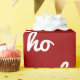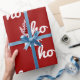Ho-ho-text illustration med vit brev på röd bakgrund inför jul. Du kan ändra bakgrunden till färg och lägga till en annan till designen efter eget val.