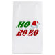 Gift-säckar med ho i 3D-grönt och röd text med en Jultomten-hatt. Mjuksäck finns i många storlekar.