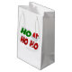 Gift-säckar med ho i 3D-grönt och röd text med en Jultomten-hatt. Mjuksäck finns i många storlekar.