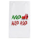 Giftsäckar med ho i 3D-grönt och röd text med Jultomten sleigh. Mjuksäck finns i många storlekar.