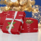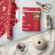 Modern, rolig och söt julomslutning papper, med en bild av en enhörnig som drar tomtens själ (fullt av gåvor), texterna "Ho ho hoh Käre, vad ett ÅR!" + "Här är en lyckligare man!" + "God jul!" och en personlig namn. Med sprinkler av vitt och silver snöflingor och två par av Julafton klockor med vår av holly, på Julafton röd bakgrund. Se till att du åtminstone anpassar namn.