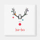 En rolig, söt, modern, minimalistisk bild av ett renhuvud med rött näsa. Med julprydnader, baublar hänger från småborna. Elegant, vit bakgrund, Färg: vit, röd, grått, blå, grönt. Röd brev och texten: ho-ho Template för att du ska kunna ändra texten om du vill. (eller ta bort den med ditt ryggutrymme nyckel.