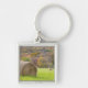 Höbaler och nedgånglövverk på lantgård, fyrkantig silverfärgad nyckelring