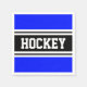 Den här djärva sportiska designen har atletisk hockeytext inuti ett stort svart center rand som markerats med dubbla vita ränder i tävla mot ljusblå ränder i royalet. Färg och text i den här utformningen kan vara personlig.
