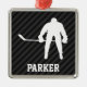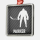 Hockey Player; Black & Mörk Grått Rand Julgransprydnad Metall
