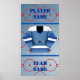 Poster med en hockeyjersey ovanför en isrocka med korsande hockeysticks och puck som finns i en mängd olika kombinationer av team färg. Anpassa med spelarens namn, nummer och team namn. Gör en underbar gåva till hockeyspelare, hockeytränare och hockeyspelare i fläkt och hockey-fantasinspelare.