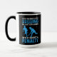 Hockey Player Penalty mugg med vit och blå text på svart bakgrund säger att jag inte säger att jag bara förklarar varför det inte var ett straff! Hockey humor mugg, som säkert är slå med alla hockeyspelare har också blå silhouette hockey-spelare.