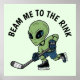Lägg till en touch av intergalaktisk glamour till din inredning med vår affisch som visar en utomjording som böjer sig för att slå en puck med en ishockeyklubba. Designen fångar andan av spelet samtidigt som den tillför en touch av kosmisk charm. Ovanför utomjordingen inbjuder frasen "Beam Me to the Rink" dig att delta i roligheten på ett lekfullt sätt. Perfekt för ishockeyentusiaster och science fiction-fans.