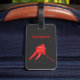 Underbarare hockeygåva till en hockeyspelare (t.ex. för att identifiera deras hockeyväska) eller till en hockey-fläkt (för att visa deras passion på alla påsar)Teckensnittsdesign: Svart bakgrund - Hockey i rött brev med hockeyskate i stället för CBack-design: Svart bakgrund + silhuett av hockeyspelare i rött + personifiera med spelarens namn