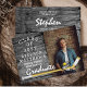 Rustik träunderlägg med hockeyklubba och puck fotoframställning examensannonsering och partiförrättande inbjudan. Originalillustration och design av Holiday Hearts Designs. Om du behöver hjälp med att anpassa efter dina krav, vänligen maila oss på info@holidayheartsdesigns.com.