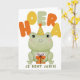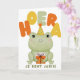 Maak een kinderverjaardag extra vrolijk met deze lieve verjaardagskaart met kikker. De schattige illustratie van een kikker met feesthoedje en cadeautje zorgt meteen voor een glimlach. De speelse tekst “Hoera je bent jarig!” maakt de kaart perfect voor jonge kinderen.