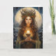 Fira Yules och Winter Solstices magi med det här fantastiska hälsningskortet som har en vacker vattenfärgsdesign med hög priestess och med hullbär, evergreen bough, pinecones och ljus före en snöbakgrund med stjärnfylld himmel och fullt. Kortet fångar Yule-andan och det återvändande ljuset, skapar det perfekten för dem som hedrar pagan, wiccan, celtic, druid eller Native American-traditioner. Oavsett om du skickar välsignelser för årets längsta natt eller firar sol naturliga cykler kommer detta kort att inspirera till naturen och säsongens mystiska energi.