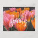 Skicka en anteckning eller hälsning till din vän eller nära en i vår med detta färgstarka vykort för söt som innehåller ett foto av rosa- och orange-tulpaner och citatet "fira vår".