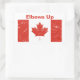 Detta är ett rött och vitt klistermärke som dekoreras med den kanadensiska flagga, som säger Elbows Up. Det är ett underbart sätt för vem som helst att visa stöd för Kanada!