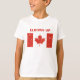 Det här är en röd och vit t-shirt som accentueras med den kanadensiska Flagga och det säger Elbows Up. Det är ett underbart sätt för vem som helst att visa stöd för Kanada!