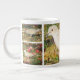 Grymt rödögd, ring-halsad buff, vit och grått Eurasian Collated Dove (ibland felaktigt för att bedra Doves) tar sig ett steg igenom härlig ljusröd och gult höst löv på en vacker solnyare höstmorgon i centrala Illinois.