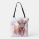 Den här väskan har vattenfärgsgrafik från en skygg höglandskost i varma jordtoner med drömmande vattenfärgsfärger tvättande av , mjuka och mjuka beige. Utskrivet på båda sidor framhäver detta mönster den charm som präglat beteslandskap och lantgårdarelegans. Idealisk för dem som uppskattar naturinspirerade rusningsteman och vild bovin.