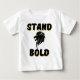 Den här t-tröjan från baby har en design som visningar ord "Stående fetstil" i ett fet utskrift med svart brev över en skuggad färgad med en svart och guld lejon huvudikon i mitten i detta trosbaserade bibelcitattematod. Detta är bekvämt, avslappnad och storlek standardmontering, tillverkad av 4,5 oz 100% kammad ring spun-bomull, med dubbla-nål sydd grund och sleeve för extra hållbarhet med enkel sliretikett.