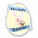 Hoggy Påsk! Cute Påsk gris bär bunny öron med en fullt av ägg från basket och en äggbakgrund.