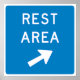 Vägvarningsskylt och vägskylt i internationell som avråder från ett viloområde framöver.