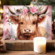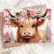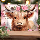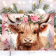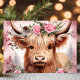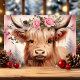I detta charmerande julkort visas en höglandskost i festen med ömtålig rosa ros och vintergröna. Den unika designen ger julhelgen en lekfull, visuell beröring. Perfekt till alla som kärlek djur, natur eller konstnärliga kort kommer att göra detta God jul hälsning till ett vackert och minnesvärt påstående.