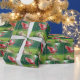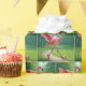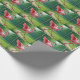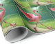 En flamande flamingo, försedd med ett pärlhalsband och rosa högklackar, slår sig tryggt längs en väg i en lush, grönt park