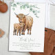 Dessa bedårande tackkort är det perfekta sättet att uttrycka tacksamhet för den kärlek och det stöd som visades under din baby shower. Med en charmig akvarellillustration av en höglandsmoderkko och hennes kalv i en boho-grönskemiljö, kommer dessa kort säkert att fånga dina gästers hjärtan. Den rustika, lantliga känslan förstärks ytterligare genom användningen av salviafärger och modern typografi, vilket gör dem till ett mångsidigt val för alla som älskar lantdjur eller naturen.