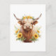 Höglandskö med Gult Solrosblomma Krona Vykort