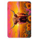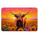 Höglandskon i solblommor vid soluppgång magnet
