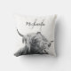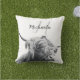 Höglandstko porträtt inledande monogram svart vitt kudde