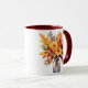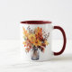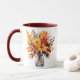 Kaffe mugg med en vattenfärgad illustration av en färgbukett av blommigtar på hösten som är uppsatt i Mason burk stil vas. Ytterligare fälg och hantera färg och storlekar.