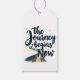 Bilden innehåller en motiveringsfras "The Journey begin Now" skriven i stort, stiliserat, mörk blått brev. Texten omges av små gulter som är spridda runt omkring, ge en känsla av och upphetsning. Under texten finns en vridningsväg som börjar från bildens grund och som leder mot horisonten. I början av vägen finns det en liten studentmössa, som symboliserar starten för en ny resa, troligen efter studenten. Vägen visas i blått och gult, vilket ger bilden en dynamisk och hoppfull känsla.