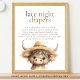 Högre land Kow för sent på natten, dagis Babyskylt. Tillgänglig digitalt och utskriven. Anpassa texten efter behov. Med en söt illustration av höglandet.